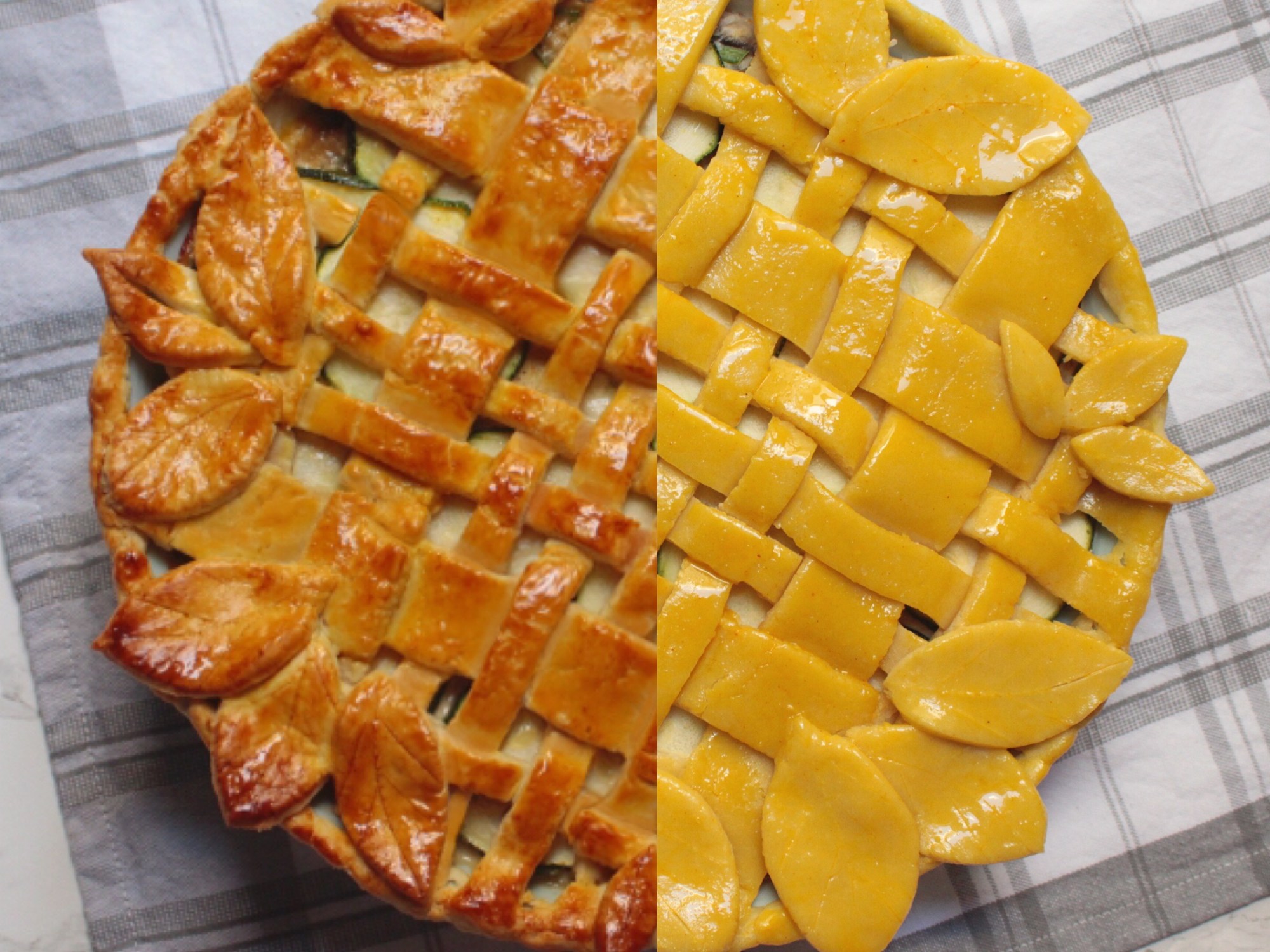 فطيرة الدجاج مع الماشروم والكراث والكوسا
