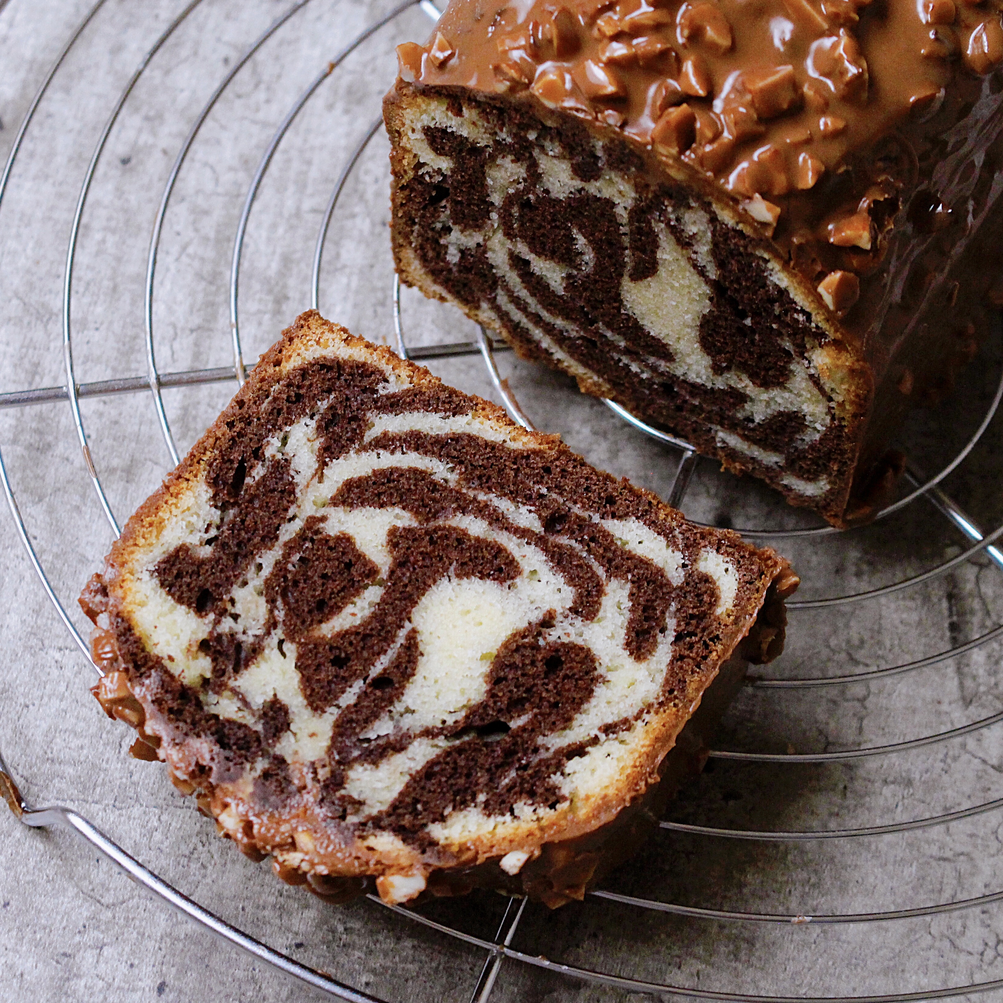 ماربل كيك بتغطية الشوكولاتة واللوز..